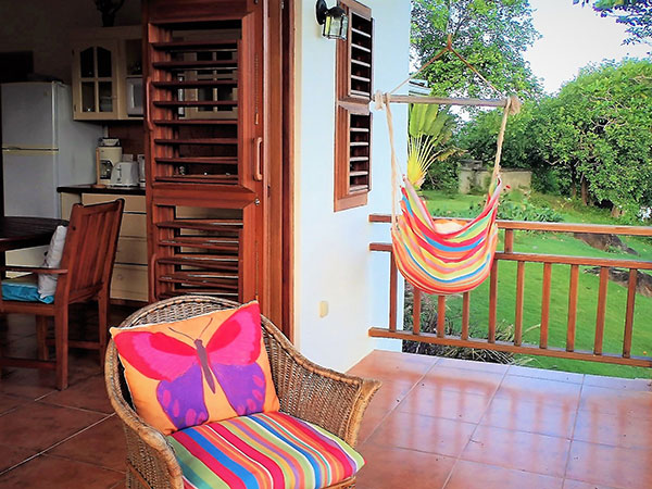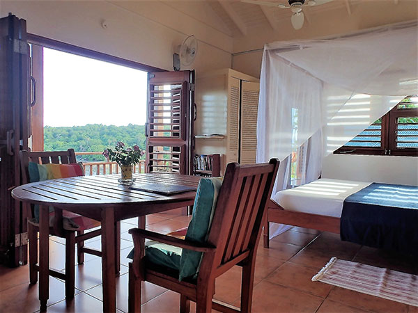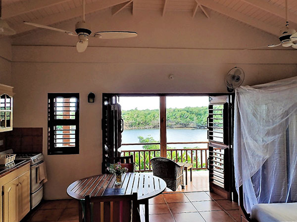 | Crochu Bay Studio and Cabier Beach Studio are self-contained and each feature a 20ft long private veranda with swing seats, dining table, kitchen, en-suite bathroom with shower.